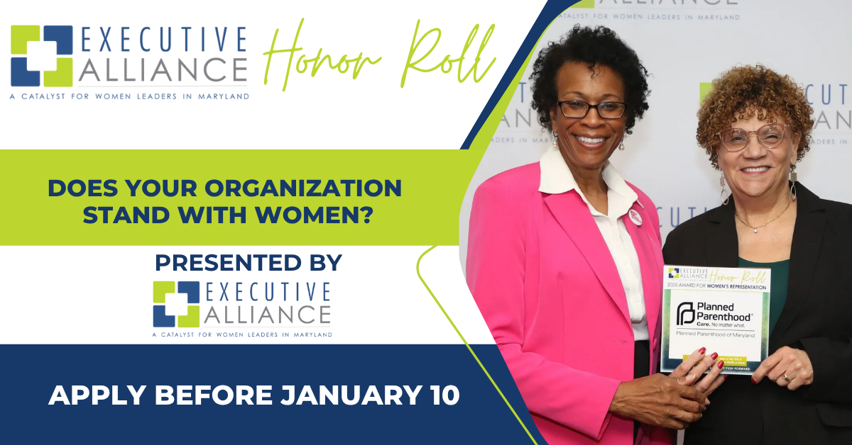 Executive Alliance is the organization of choice in the State of Maryland for connecting accomplished women on a professional and personal level to expand their impact and influence in the board room, the community, and in the leadership of businesses, civic organizations, and government.