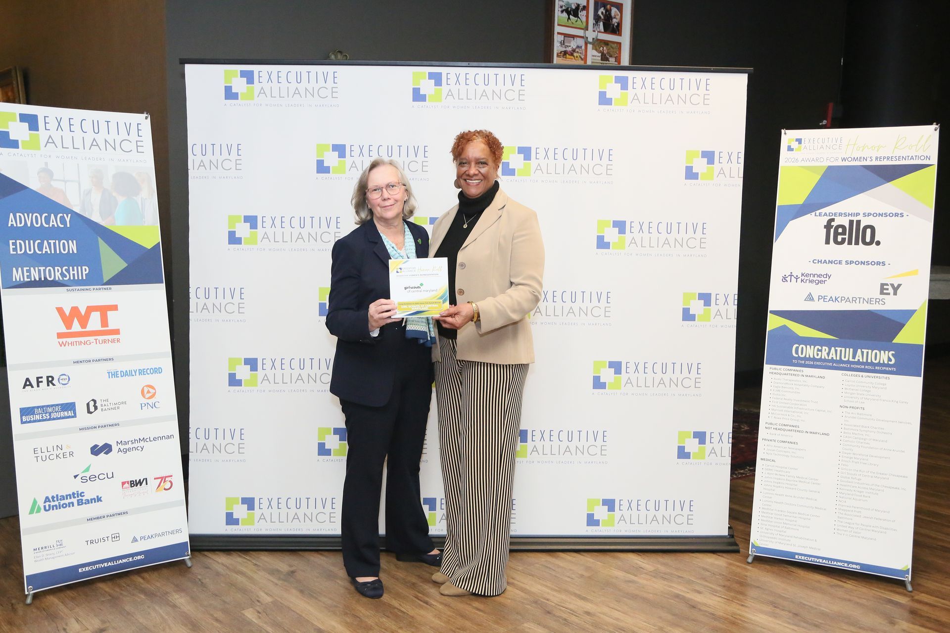 Executive Alliance’s Honor Roll award is open to all private companies and non-profits headquartered, or having a significant employee population within the State of Maryland. As part of Executive Alliance’s Annual Census Report of Women Board Directors in Maryland, Maryland’s publicly-traded companies will be assessed.